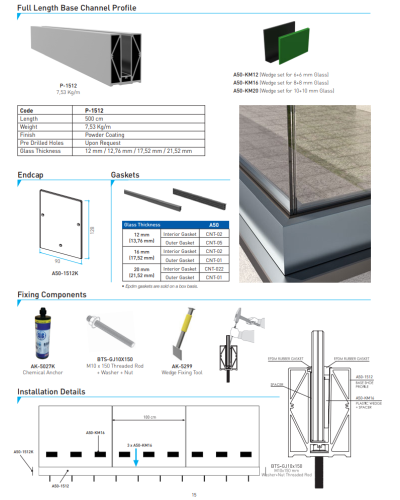 Die Montageanker sind für eine robuste Installation mit Optionen wie М10 oder Betonschrauben ausgelegt und bieten eine zuverlässige und widerstandsfähige Befestigung. Die Glasdicke variiert zur Anpassung an unterschiedliche Sicherheits- und Ästhetikniveaus mit Optionen von 8.8.2 bis 12.12.4.