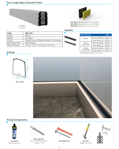 Das MX50-System verkörpert eine perfekte Verschmelzung von Design, einfacher Installation und Kosteneffizienz.Entworfen, um bis zu 5 Meter extrudiert zu werden, mit der Möglichkeit, vorgebohrte Löcher nach spezifischen Anforderungen hinzuzufügen, ist dieses Glasgeländer mit einer Vielzahl von Glasstärken von 10mm bis 17,52mm kompatibel. Beliebt für seine RAL-Farbpalette, einschließlich der Farbtöne 7016 und 9005, bietet das MX50 auch Eloxaloptionen, sowohl naturbelassen als auch mit Edelstahleffekt, für ein elegantes und modernes Finish.Das äußere Design des Profils sorgt für eine weiche und angenehme Ästhetik für das Auge. Das aus erstklassigem Edelstahl gefertigte MX50 eignet sich aufgrund seiner außergewöhnlichen Korrosionsbeständigkeit ideal für den Einsatz in maritimen Umgebungen. Für Projekte im Landesinneren stehen andere günstige Glasgeländermodelle zur Verfügung, die dennoch kompromisslose Qualität und Haltbarkeit garantieren. Für eine optimale Einhaltung von Sicherheits- und Architekturstandards wird die Verwendung von gehärtetem Verbundglas des Typs 6+6 und von 12 mm starkem, transparentem gehärtetem Glas empfohlen.