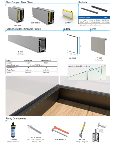 Das MC60 Aluminium verkörpert die nächste Generation von Glasgeländern und bietet mit seinem einstellbaren Glaswinkel eine beispiellose Flexibilität. Die Installation ist kinderleicht: Befestigen Sie einfach das Aluminiumprofil, setzen Sie das Glas ein und stellen Sie es mithilfe des Zwischenkeils auf den gewünschten Winkel ein. Das System wird durch eine innovative Vorrichtung, das "Magic Pack", gesichert, das eine zuverlässige Verriegelung innerhalb des Profils garantiert.