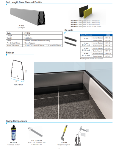 Es ist in Längen von 6 Metern erhältlich und kann nach Kundenspezifikation vorgebohrt werden. Das System ist für Glasstärken von 12 mm bis 21,52 mm geeignet.