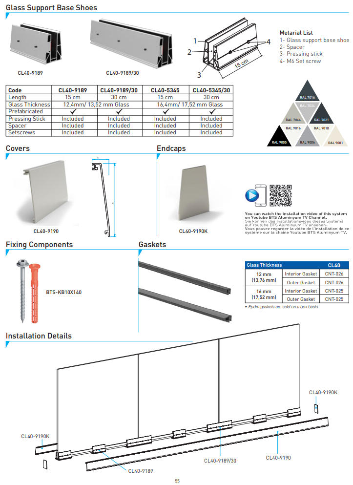 Le système de balustrade en verre extérieur MCL40, doté d'une capacité d'intégration de divers accessoires de quincaillerie, assure un maintien solide des panneaux de verre. Innovant, le MCL40 est un garde-corps en verre sans cadre, conçu avec des patins en aluminium, éliminant le besoin de balustres verticaux ou de poteaux intermédiaires. Ce système est idéal pour des vitrages de petite épaisseur, variant de 12 à 17 mm, et peut être installé sur un socle en béton de parapet, soit comme structure autonome, soit en association avec nos profils de main courante exclusifs. La base modulaire de 15 cm, fabriquée en métal résistant, est ancrée solidement grâce à deux vis de fixation. De plus, le rail de couverture, conçu avec une inclinaison subtile, parcourt la longueur totale de la balustrade, garantissant ainsi une stabilité sans faille.