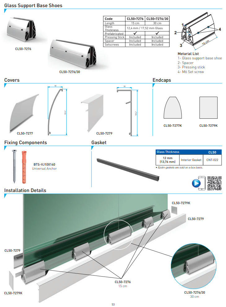 - Polyvalence : Conçu pour les applications intérieures et extérieures et spécialement pour balustrade extérieure en verre