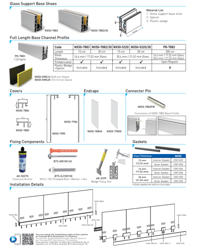 - Epaisseur de verre : convient aux épaisseurs de verre de 16 à 21 mm.