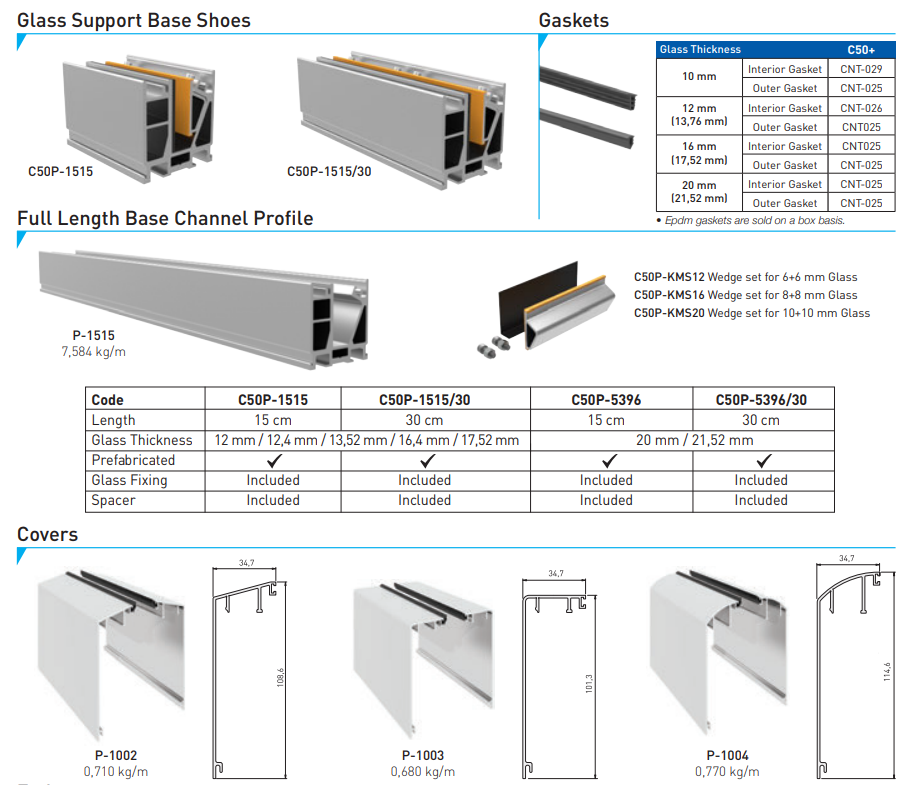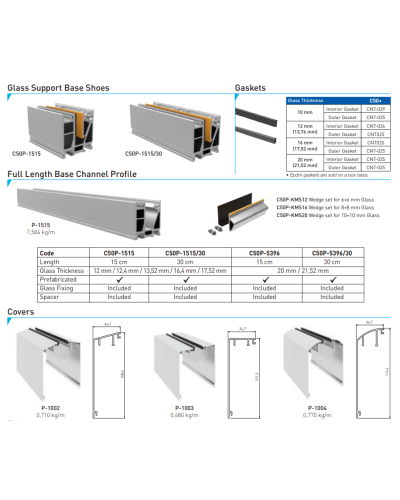 Le système est compatible avec l'utilisation de verre feuilleté de sécurité d’une épaisseur de 6+6 mm, 8+8 mm et 10+10 mm. L’utilisation du verre feuilleté est cruciale car elle contribue à la prévention des blessures en cas de bris de verre ; les éclats restent adhérés à la couche de PVB.