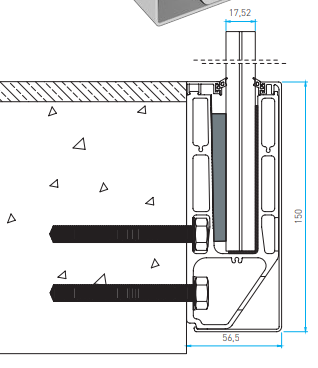 L'extension inférieure du profilé offre un avantage distinct : elle permet de positionner les boulons d'ancrage en dessous du niveau de la dalle, assurant ainsi une fixation solide et discrète. Les panneaux de verre s'intègrent parfaitement grâce aux coins conçus pour se loger dans la base en aluminium, assurant sécurité et esthétique. Les caches de finition, disponibles en diverses options de couleurs anodisées ou de revêtement en poudre, viennent dissimuler les trous d'ancrage, offrant une finition épurée et personnalisable à l'avant du profil.