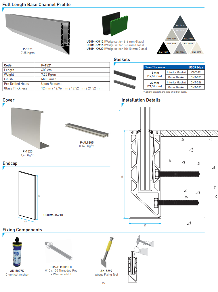 Le système MU50Rmax représente l'excellence en matière de garde-corps en verre, conçu pour une installation en façade ou en applique latérale.