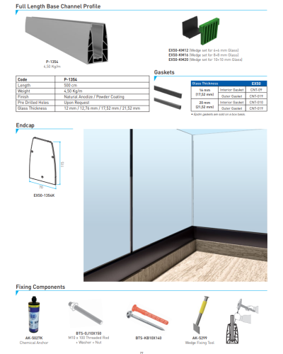 Once the floor profile has been installed, the glass can be fitted in record time. Made-in-glass offers complete systems that are aesthetically perfect, quick and easy to install. The clean lines and glass infill system give MEX50 glass balustrades a sophisticated, modern appearance.