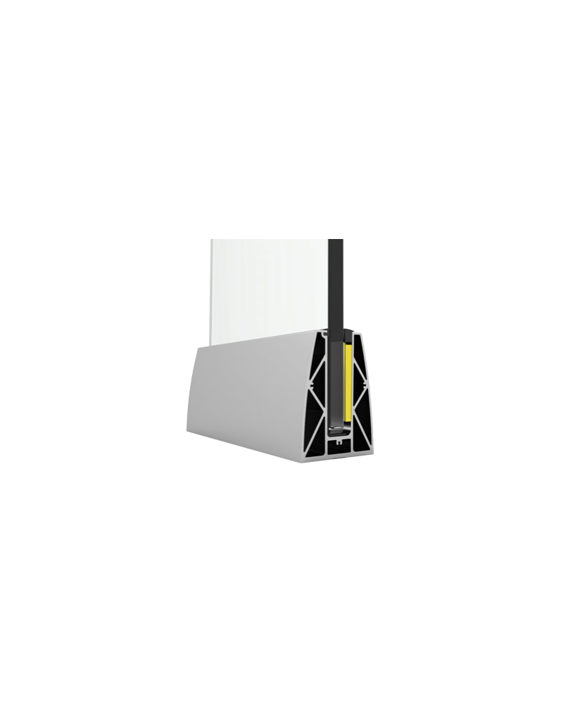 Available in 6-meter lengths, it can be pre-drilled to customer specifications. The system is adaptable to glass thicknesses ranging from 12 mm to 21.52 mm.